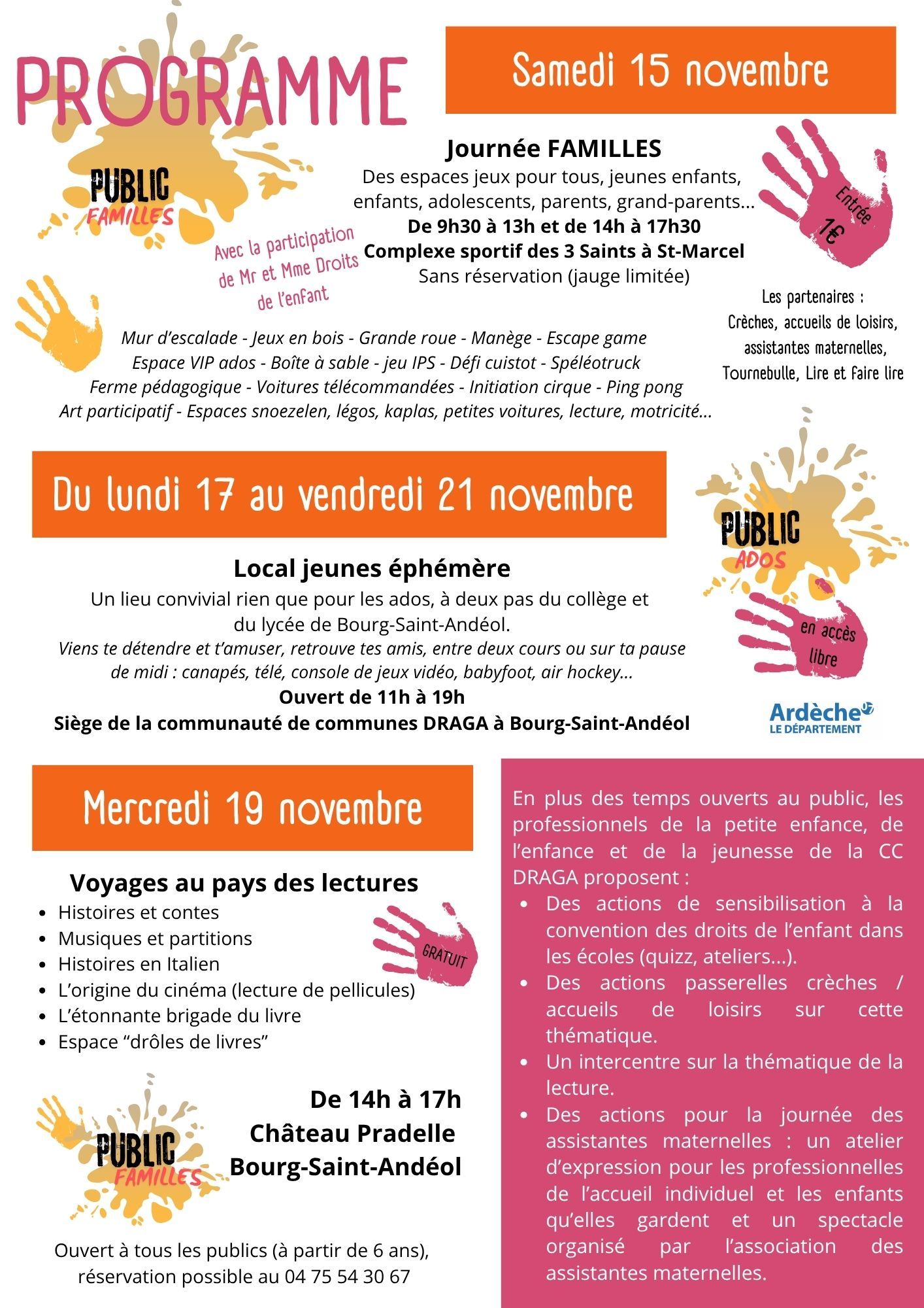 Le festival démarrera le samedi 15 novembre avec la journée famille au complexe intercommunal sportif à St-Marcel-d’Ardèche de 9h30 à 13h00 et 14h00 à 17h30.