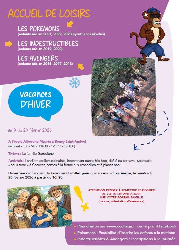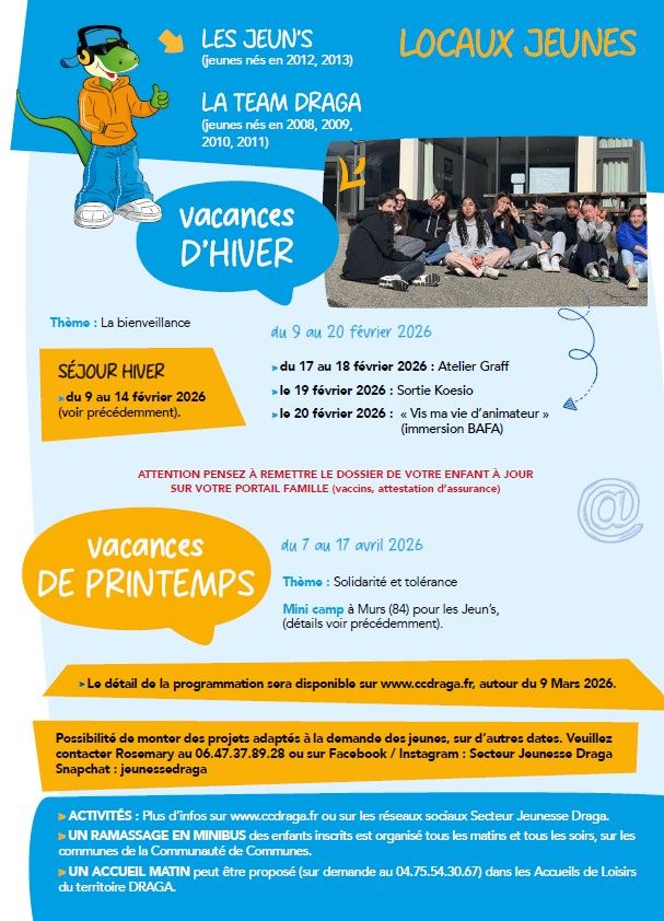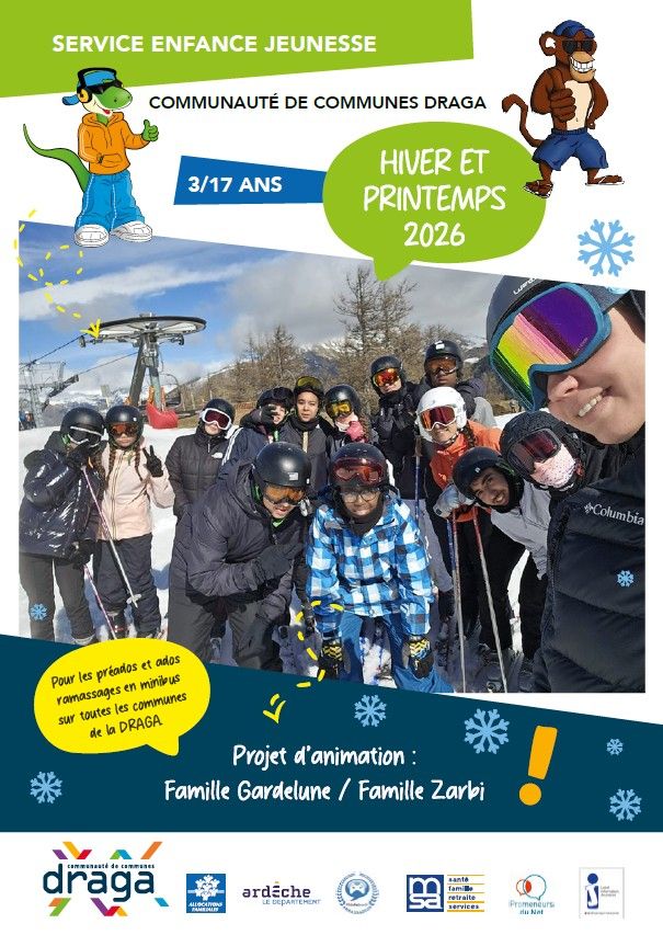 Découvrez le programme d'activités des vacances d'hiver 2026, pour les 3-17 ans du territoire DRAGA.