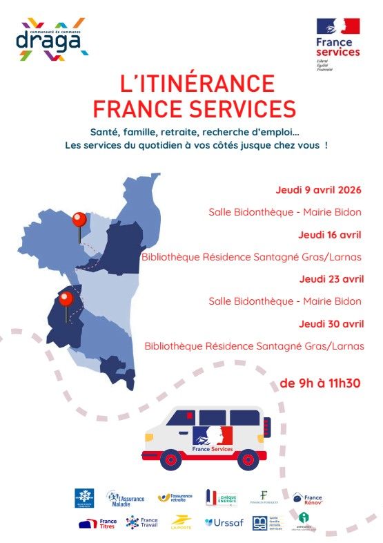 Au-delà des deux France Services de Bourg Saint-Andéol et Saint-Marcel d’Ardèche, les conseillères se déplacent désormais sur le territoire intercommunal pour venir à votre rencontre en vous proposant un appui à vos démarches administratives autour des 12 partenaires :